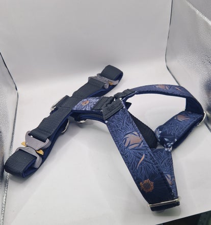 Verstellbares Hundegeschirr (40 mm) mit Blumen.03 -Design – aus robustem Polypropylen-Gurtband und weichem Softshell. Ausgestattet mit 2 original Austrialpin Cobra-Schnallen für maximale Sicherheit.