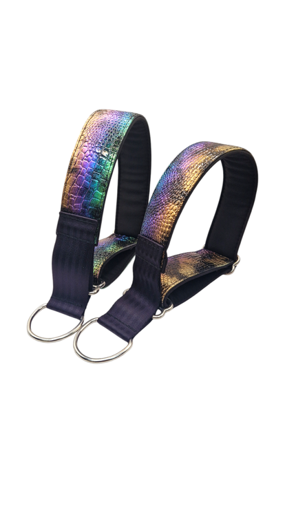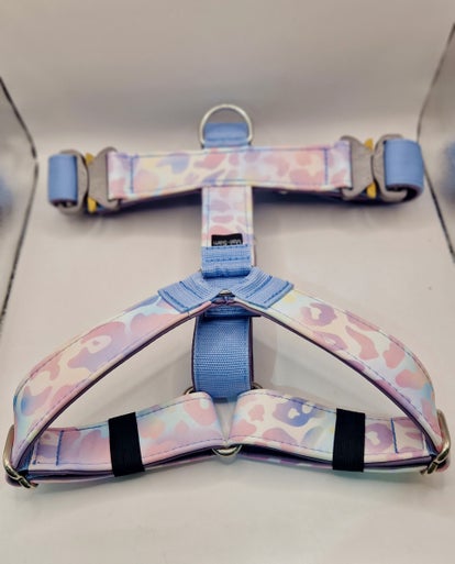 Verstellbares Hundegeschirr (40 mm) mit Leo-Holo-Design – aus robustem Polypropylen-Gurtband und weichem Softshell. Ausgestattet mit 2 original Austrialpin Cobra-Schnallen für maximale Sicherheit.